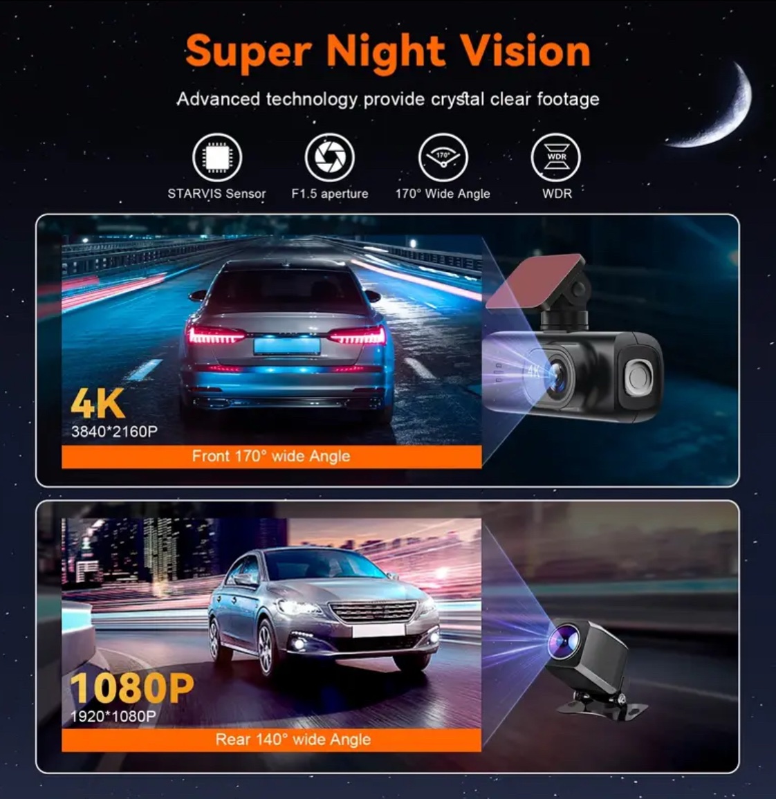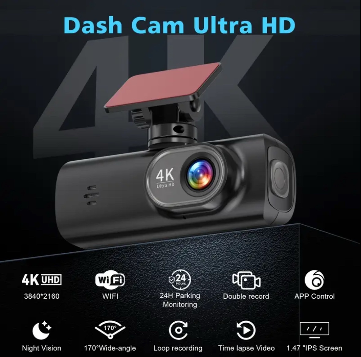 - Ultra HD Dash Cam Front and Rear, 4K+1080P Dual Dash Camera with APP, 3.73cmIPS Screen Mini Car Camera for Cars, Built-in Wi-Fi & G-Sensor, 170° Wide Angle, WDR, Night Vision, Loop Recording, 24/7 Parking Mode,