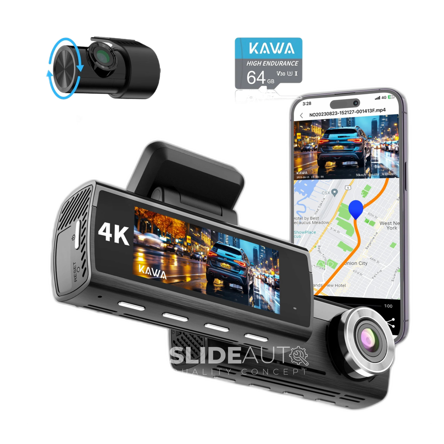 - KAWA 4K WiFi Dash Cam D10, AI-ISP True Color Night Vision, STARVIS IMX415, 4K+1080P Front and Rear Dual Car Camera, Night Vision, Include 64GB TF Card, GPS, 8.03cm IPS Screen, 24H Parking Mode, Support 256GB.